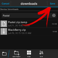 1. Click on a Theme link below and save it to the Downloads folder on your BlackBerry. File Manager app will be opened. Select the Save button.